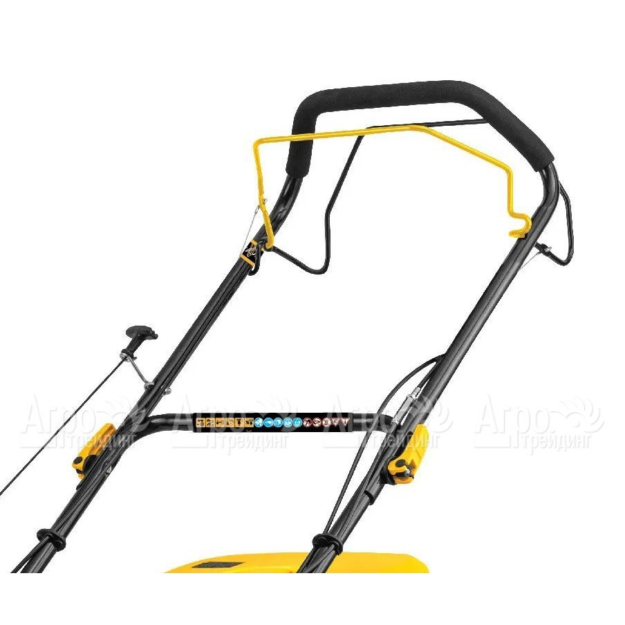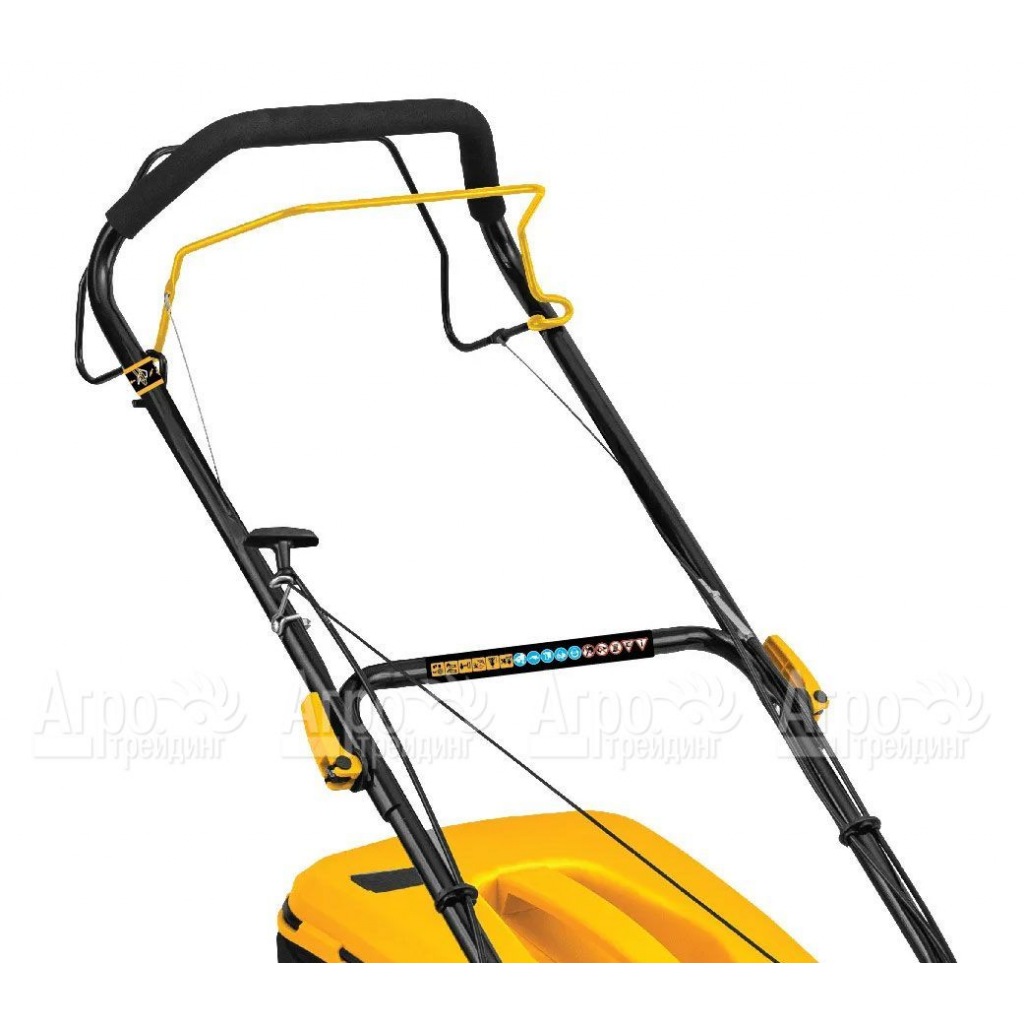 Комфорт и безопасность: Рукоятка газонокосилки оснащена виброгасящим покрытием, что обеспечивает комфортную работу и снижает вибрацию. Вы сможете работать длительное время без неприятных ощущений.