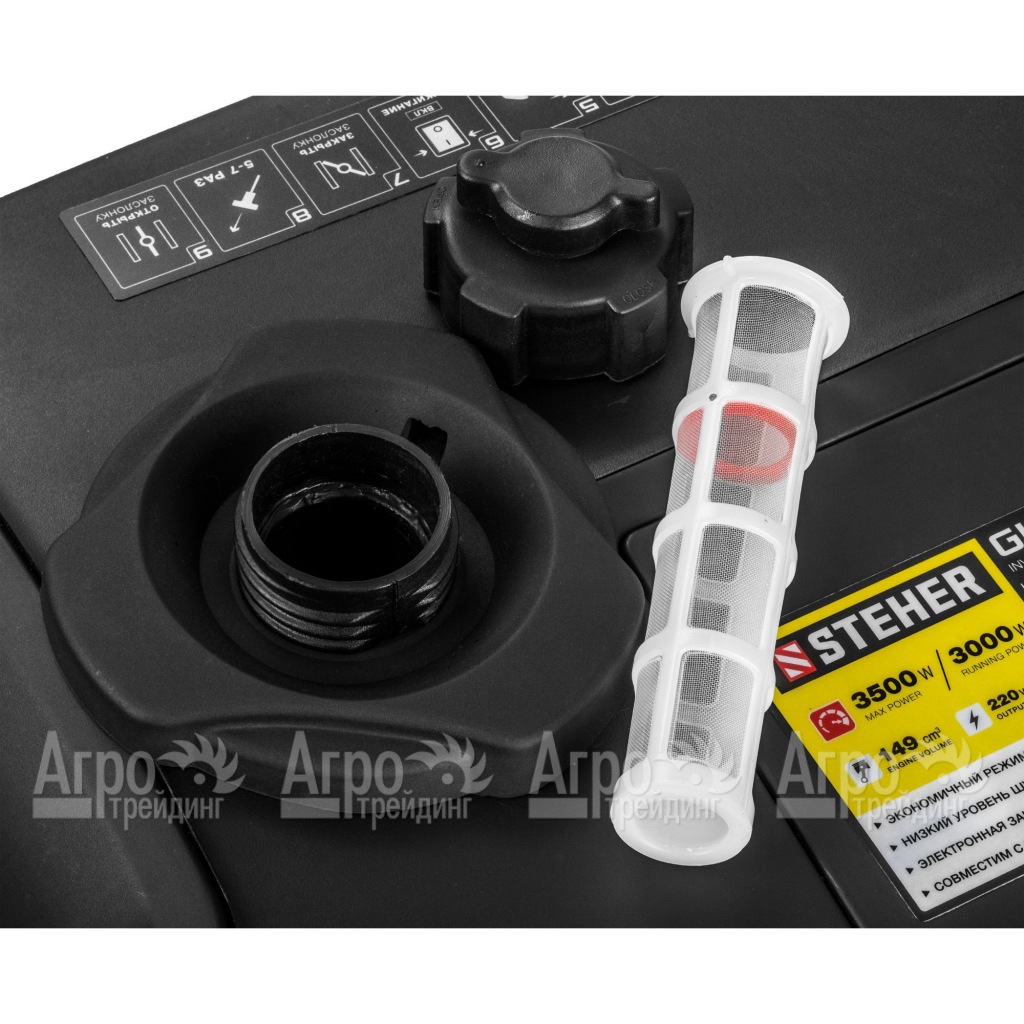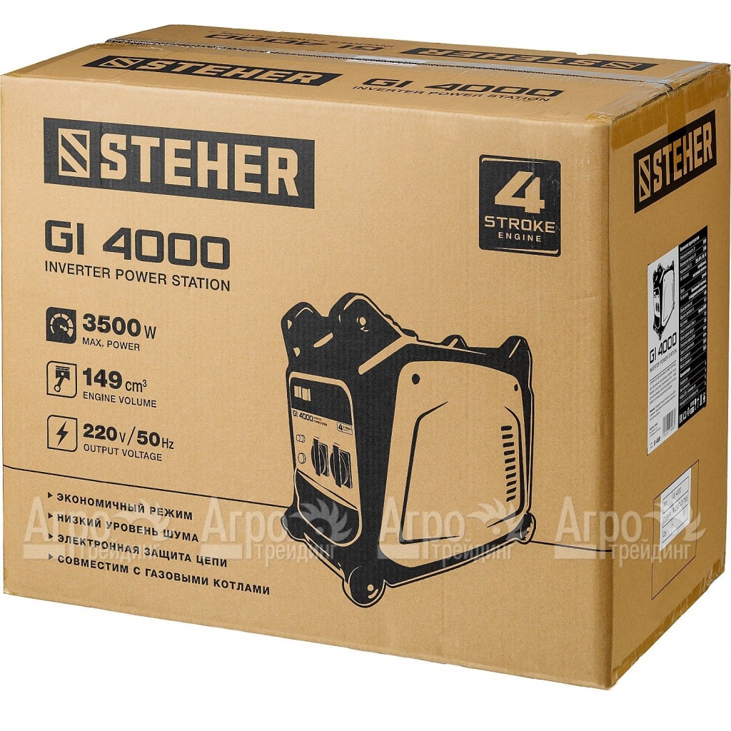 Характеристики товара: Бензогенератор инверторный Steher GI-4000 3 кВтПодробное описание товараИнверторный генератор Steher GI-4000 3 кВт является мощным источником резервного или аварийного электроснабжения и предназначается для обслуживания частных домов, небольших магазинов и стройплощадок. Топливный резервуар на 7,5 л обеспечивает 4 часа непрерывного использования, а специальный кожух снижает уровень шума силового агрегата. Использование инверторного преобразователя повышает качество вырабатываемого тока, адаптируя станцию под работу любых электронных систем, в том числе высокоточных и требовательных к напряжению. Наличие дополнительного 12-вольтового выхода позволяет проводить подзарядку автомобильной аккумуляторной батареи. Из дополнительных преимуществ серии следует выделить поддержку специального режима экономичного расхода топлива. За счет компактности и малого веса варианты эксплуатации оборудования существенно расширяются. Также здесь реализована передовая система защиты от перегрева из-за нехватки масла. Четырехтактный двигатель комплектуется раздельными системами смазки и питания, а встроенная электронная защита автоматически отключает прибор при коротком замыкании или превышении допустимой нагрузки. В комплект поставки входит кабель с клеммами для зарядки АКБ.