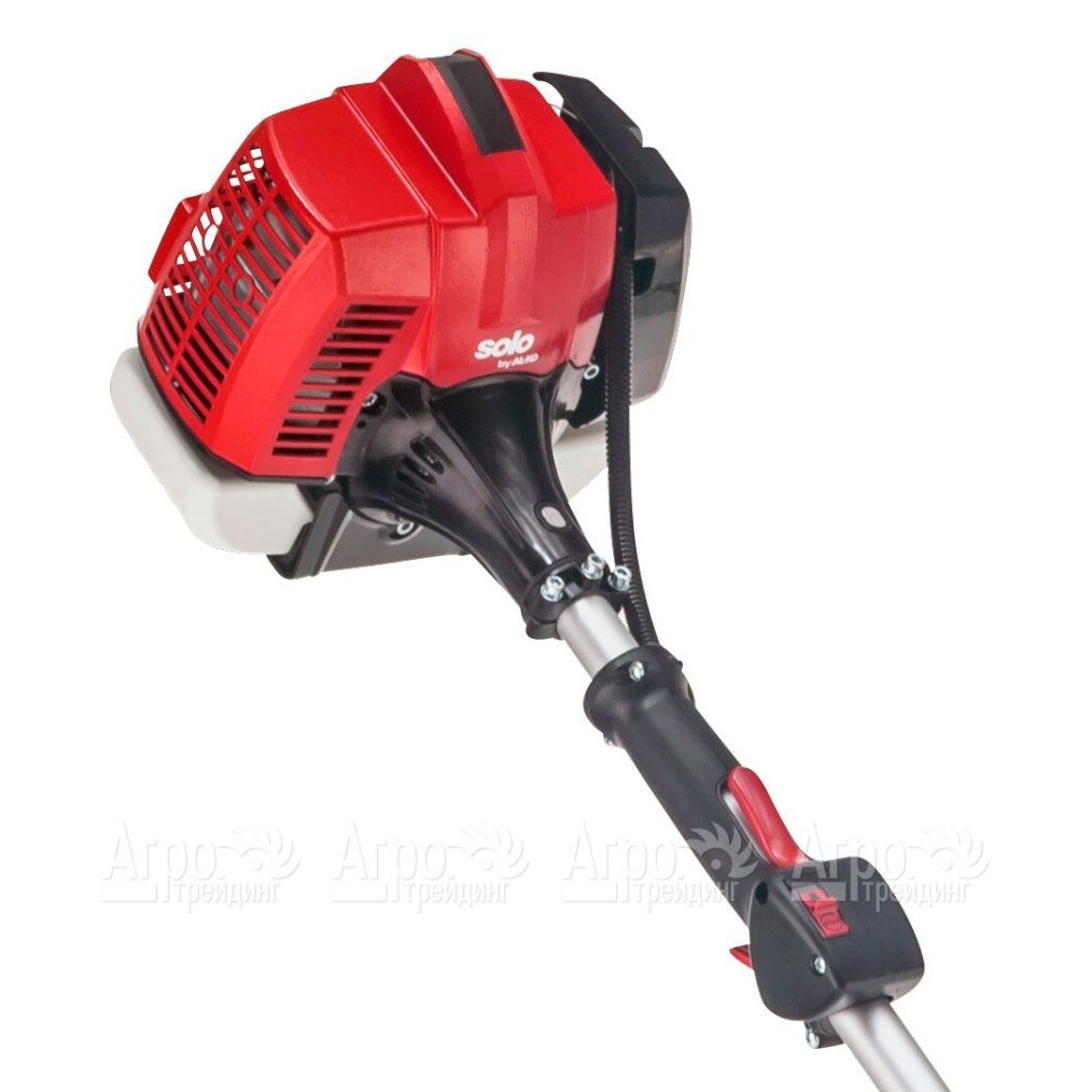 Характеристики товара: Бензокоса (бензиновый триммер) Solo by AL-KO 126 LПодробное описание товараБензокоса (бензиновый триммер) Solo by AL-KO 126 L представляет собой удобный инструмент с верхним расположением двигателя, эргономичной D-образной рукояткой и полуавтоматической триммерной головкой. Данный агрегат используется для кошения травы и бурьяна на сложных участках или в труднодоступных местах. ДВС машины запускается ручным стартером. Мотор защищён от перегрузок и короткого замыкания. Штанга прямая, разборная. Режущим элементом косы является леска. Потребление топлива минимальное. Одного полностью заправленного бака хватает на обслуживания участков большой площади. Такая бензокоса будет полезна не только в личном хозяйстве, но и в организациях, занимающихся обслуживанием зелёных насаждений. К дополнительным плюсам триммера Solo by AL-KO 126 L относят его небольшой вес, сбалансированную развесовку, наличие удобного плечевого ремня, простое техническое обслуживание. Отдельно выделяют доступную стоимость косы и её длительный срок службы.