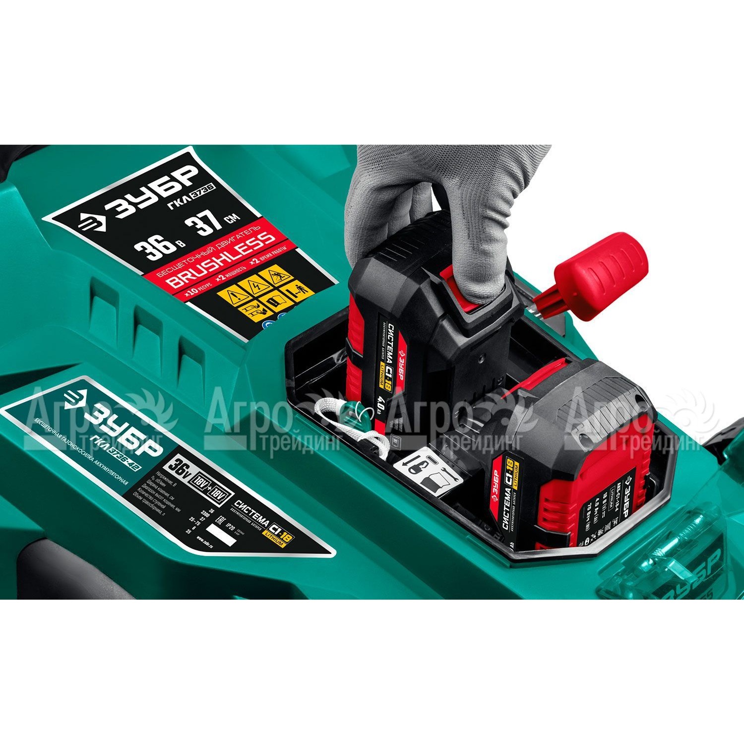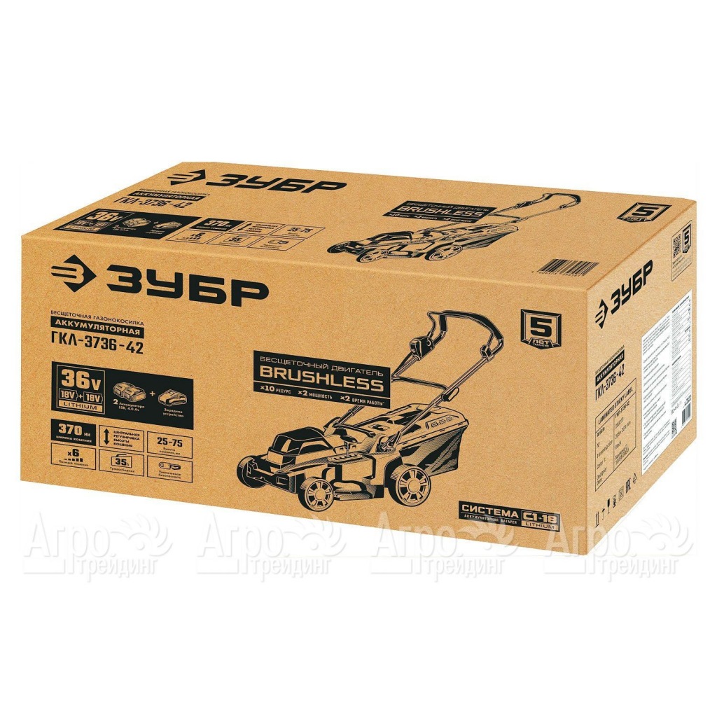 Газонокосилка аккумуляторная Зубр ГКЛ-3736 (без аккумулятора и зарядного устройства)