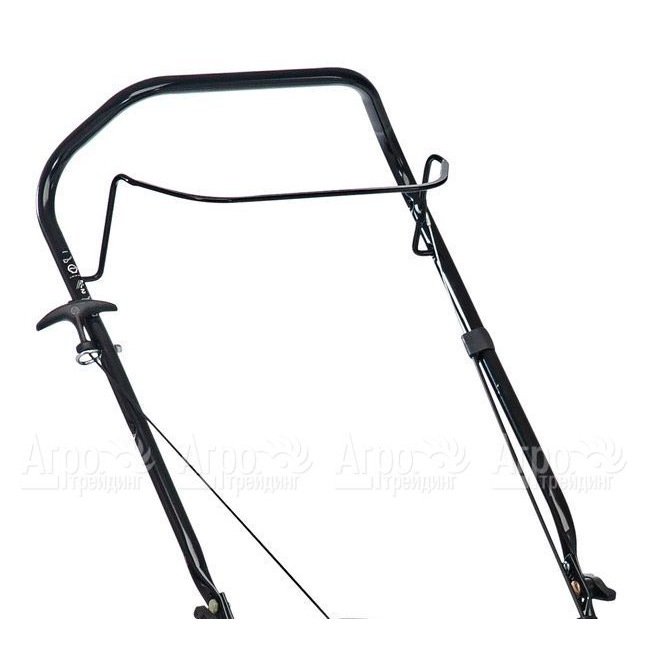 Также следует обратить внимание на улучшенную цельнометаллическую деку с порошковым покрытием, за счет чего обеспечивается повышенная стойкость к износу и продолжительный срок службы режущих элементов. Для хорошей проходимости и уверенного сцепления со сложными поверхностями предусмотрены колеса на шарикоподшипниках. Аккуратность при хранении и удобство при транспортировке достигается благодаря складной рукоятке.