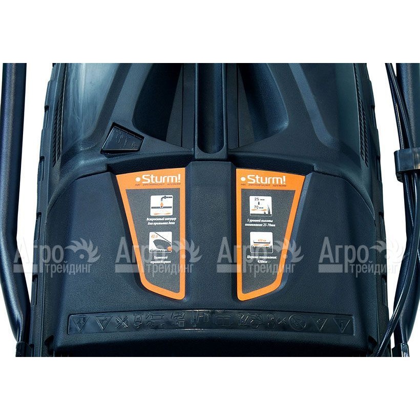 Sturm PL4214S имеет надежную стальную деку с антикоррозийным покрытием MetalAnticorr, которое защищает ее от ржавчины и коррозии, обеспечивая долгую службу и сохранение внешнего вида. Также в деке предусмотрен штуцер для подключения шланга, что позволяет легко промыть деку изнутри.