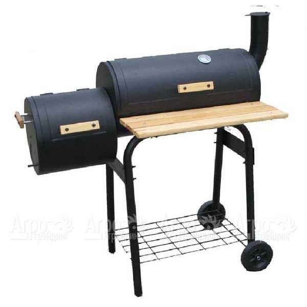 Характеристики товара: Гриль-коптильня Green Glade 11092Подробное описание товараГриль-коптильня, отдельно топка для копчения, размер решетки 52х30, на колесах, с двумя полками, термостат, размер 110х100х60.