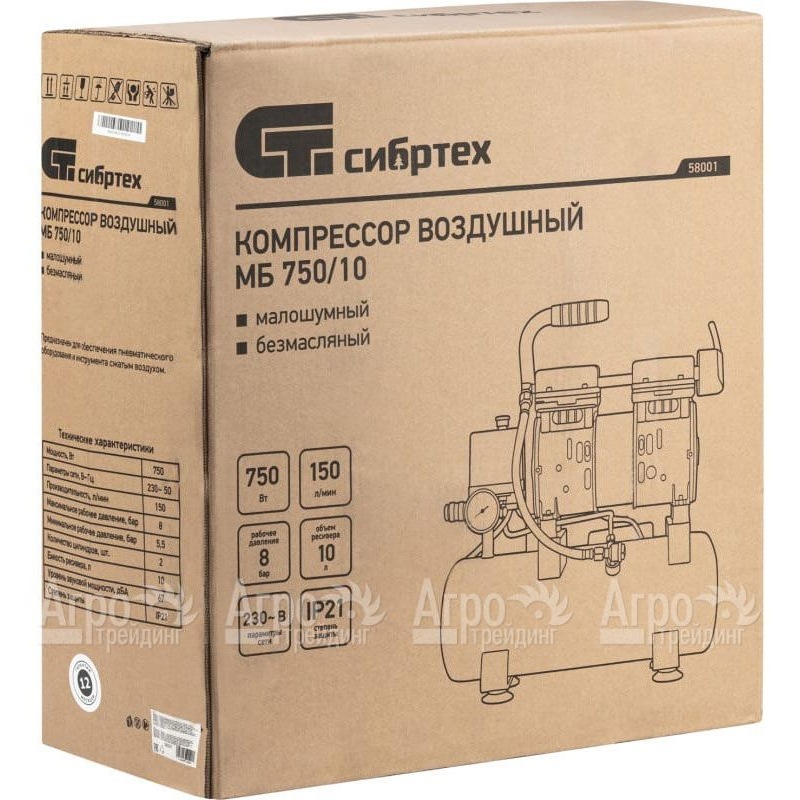 Компрессор безмасляный малошумный Сибртех МБ 750/10