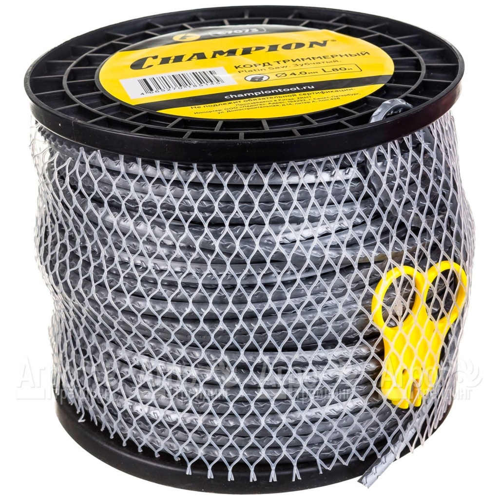 Характеристики товара: Корд триммерный Champion Platin Saw 4.0мм, 80м (зубчатый)+нож
