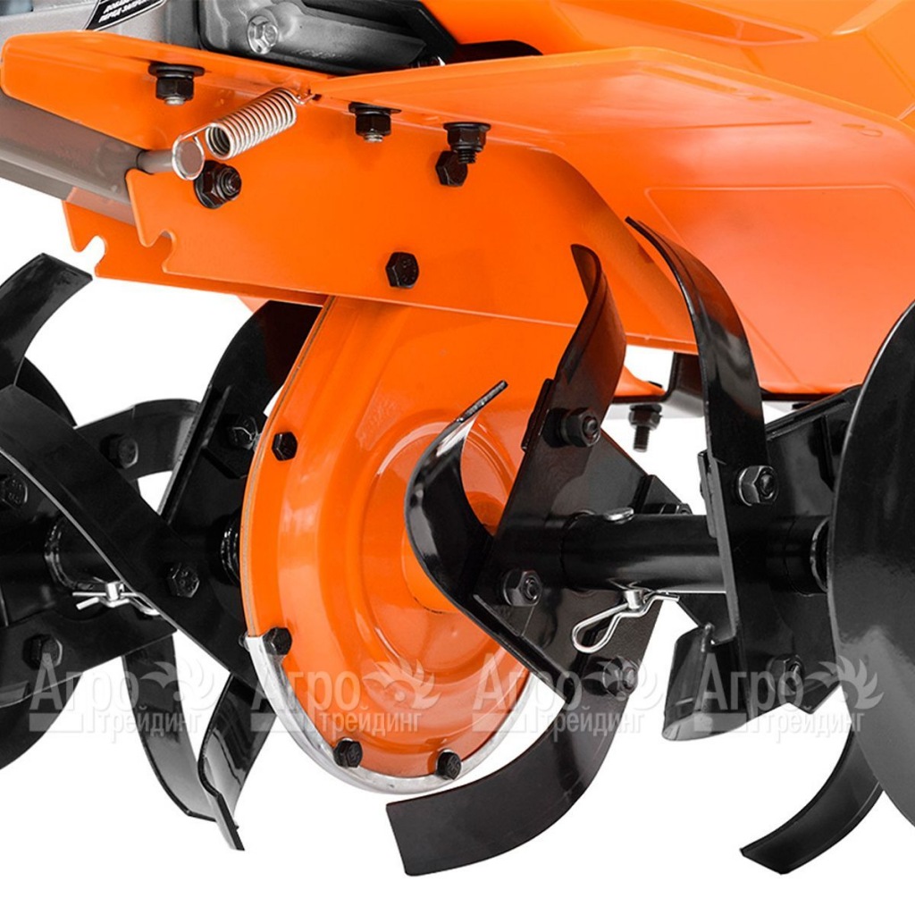 Благодаря наличию реверса агрегат отличается маневренностью, что позволяет осуществлять обработку почвы между деревьями и возле ограждений. Для удобного перемещения по рабочему участку он оборудован большим транспортировочным колесом. Эргономическая прорезиненная рукоятка при интенсивной эксплуатации снижает нагрузку на руки и плечи оператора. Антикоррозийное покрытие обеспечивает высокую износостойкость корпуса агрегата.