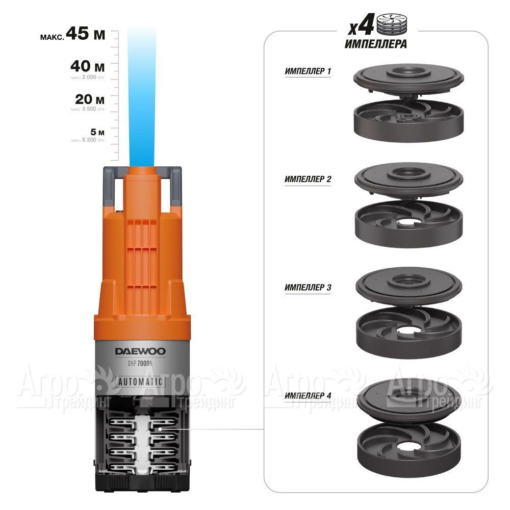 Насос высоконапорный колодезный Daewoo DHP 7000A