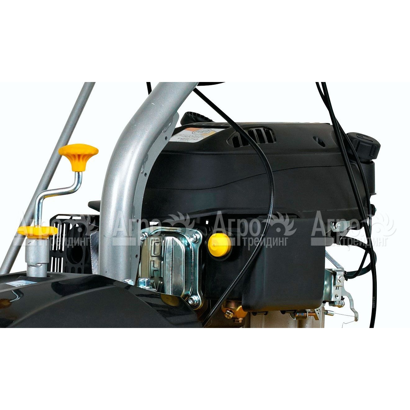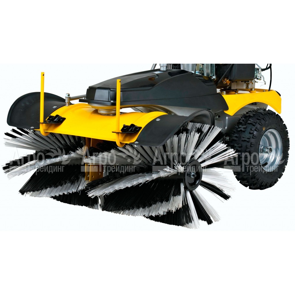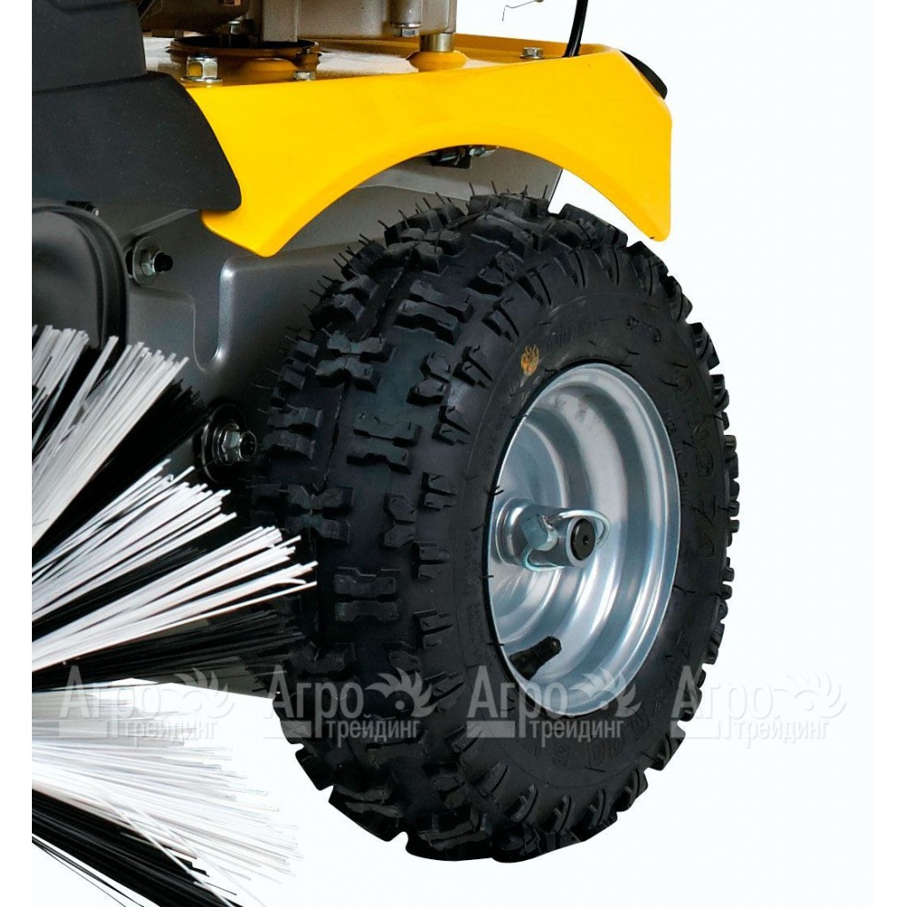 Обеспечить максимальную производительность, сниженный расход топлива и длительный период эксплуатации удается за счет оснащения мощным современным двигателем. Еще одной существенной особенностью модели считается возможность регулирования скорости вращения, чему способствует специальная желтая рукоятка, встроенная в руль. Для эффективной очистки территории от снега используются специальные щетки с узорами. Для лучшей проходимости агрегат оснащен резиновыми колесами внушительного размера.