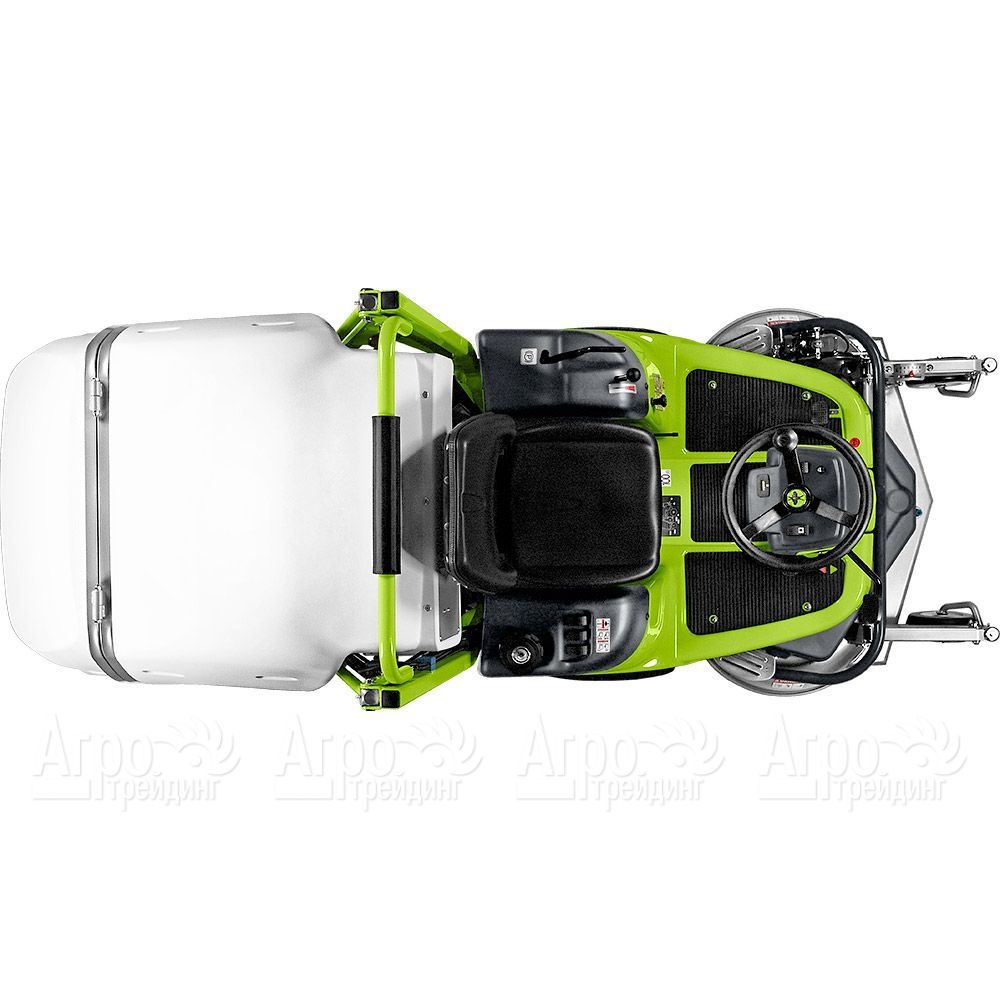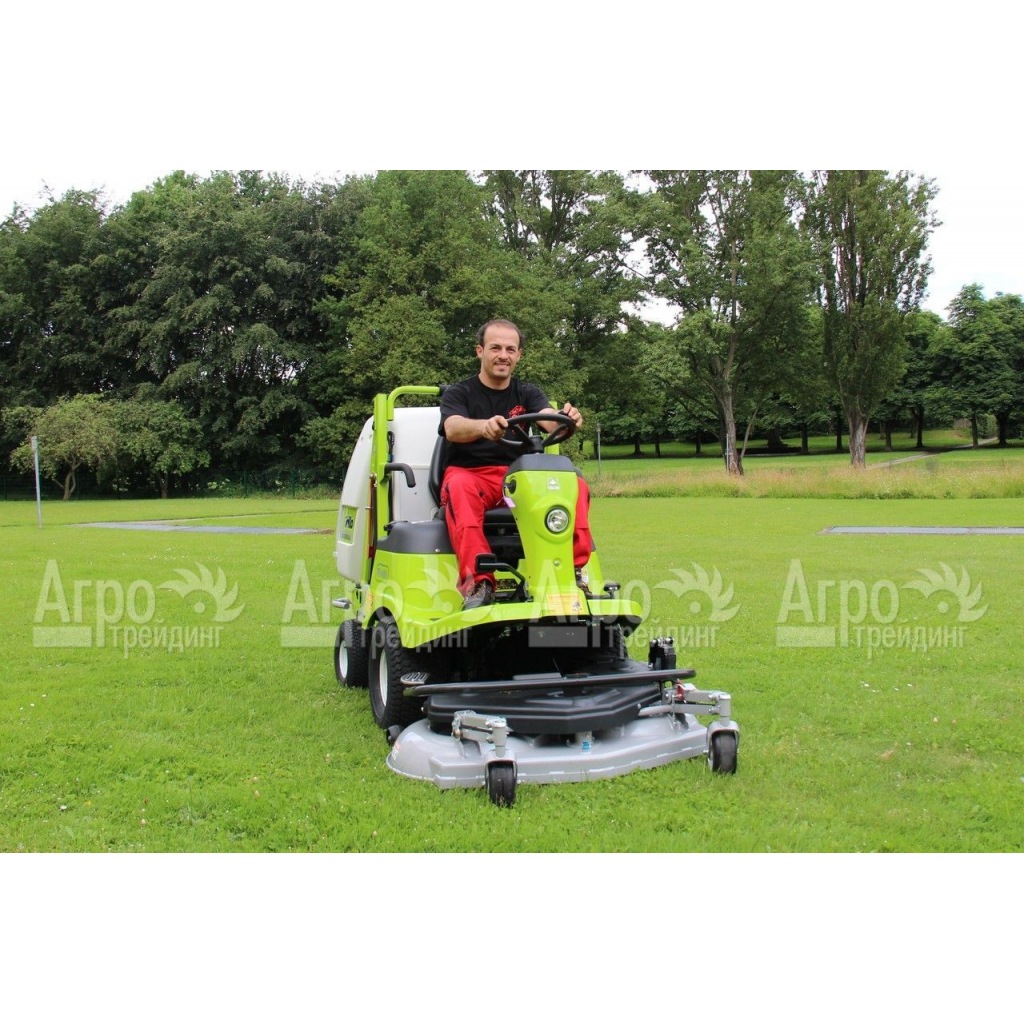 Дополнительная информация: фронтальное расположение деки, бесступенчатая регулировка скорости передвижения, механическая система блокировки дифференциала с педальным управлением, гидравлическая разгрузка травосборника, стояночный тормоз - дисковый тормоз