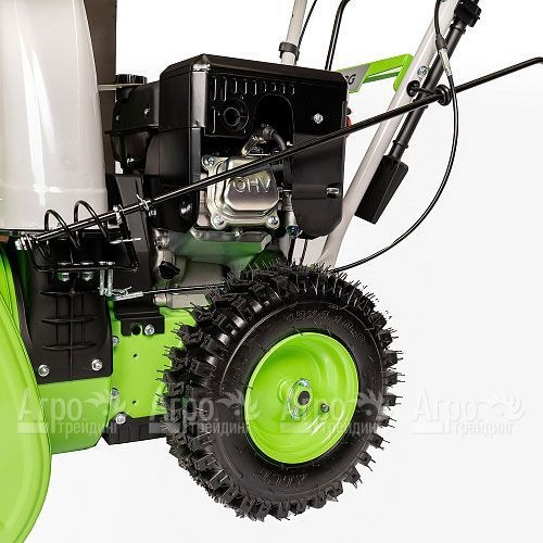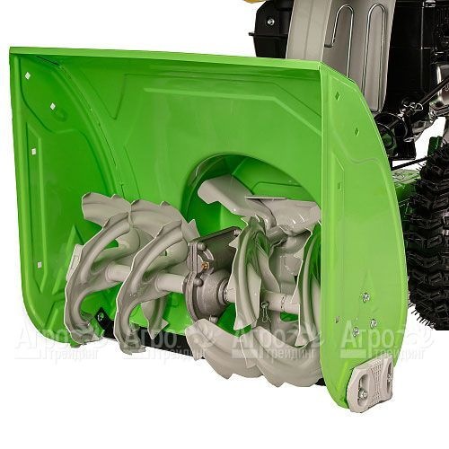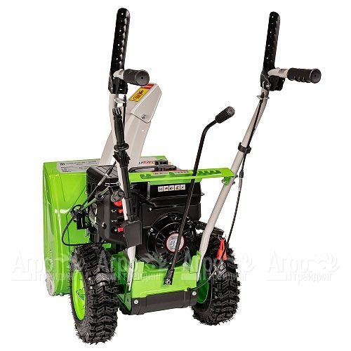 Благодаря мощному двигателю с воздушным охлаждением, модель обеспечивает стабильную работу даже в суровых зимних условиях. Удобная колёсная база и продуманная система привода делают управление интуитивно понятным, а передвижение — легким и плавным. Двухступенчатая система шнеков из металла эффективно справляется даже с плотным и слежавшимся снегом, обеспечивая его быструю переработку и выброс.