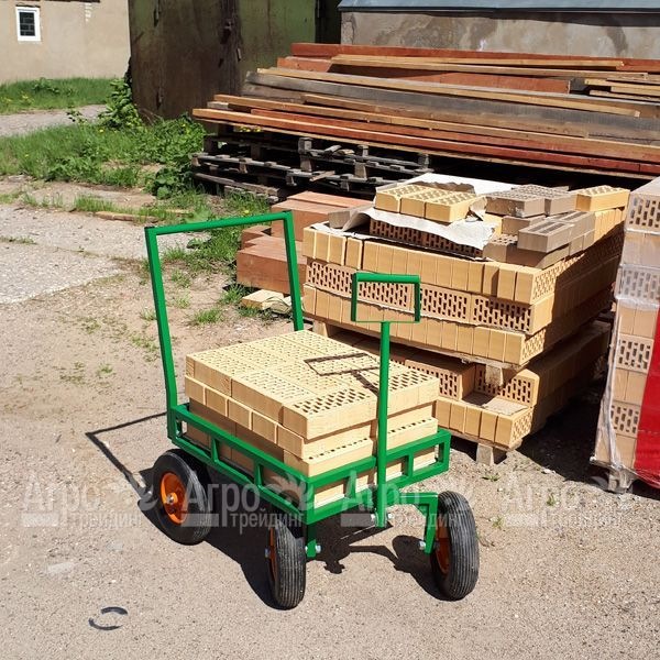 Тележка Sadovodcart Садовод четырехколесная не откидная широко используется для транспортировки строительных грузов, к числу которых относятся цементные смеси, кирпич, оборудование, инструментарий, а также пластиковые ящики и емкости с жидкостями. Благодаря наличию четырех пневматических колес обеспечивается высокая маневренность, удобство в управлении, стабильность на неровной поверхности и оптимальное распределение нагрузки. За счет отсутствия корыта достигается возможность перевозки содержимого любых объемов и габаритов.