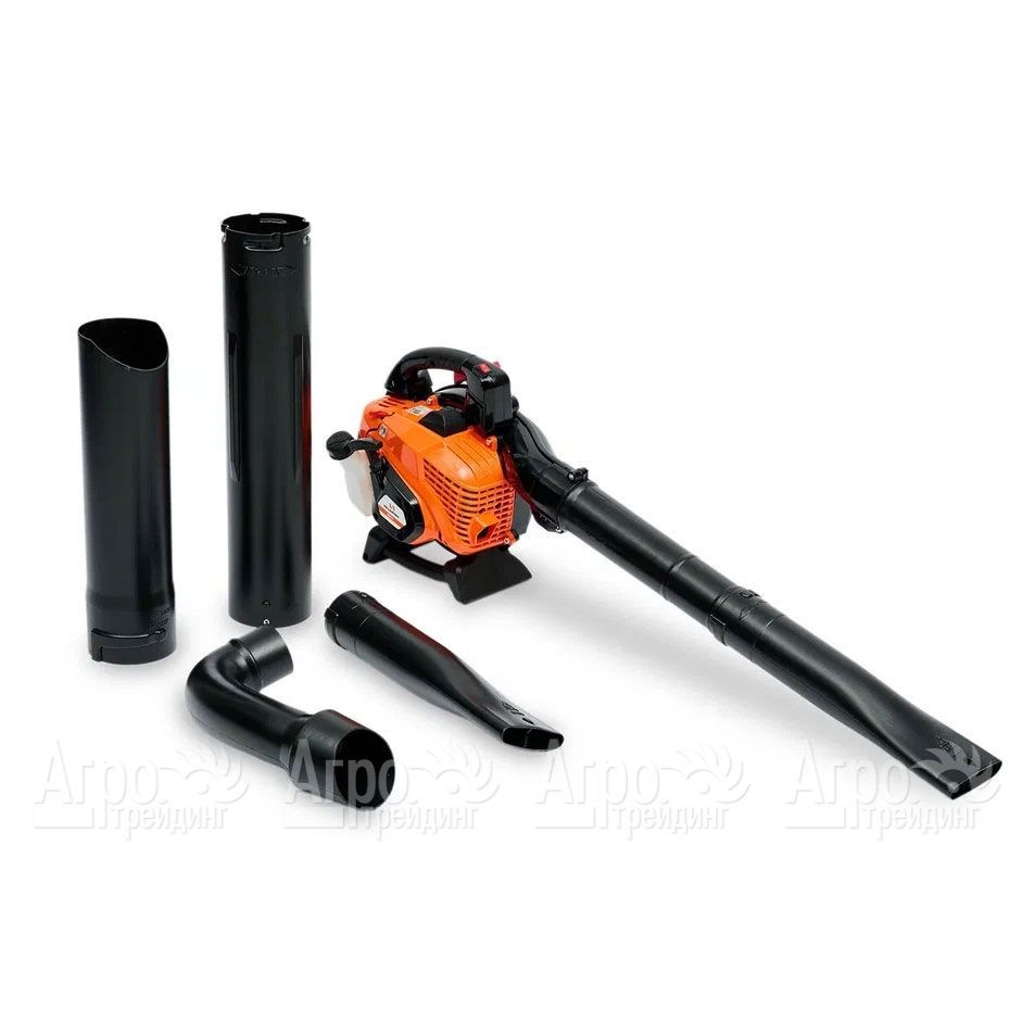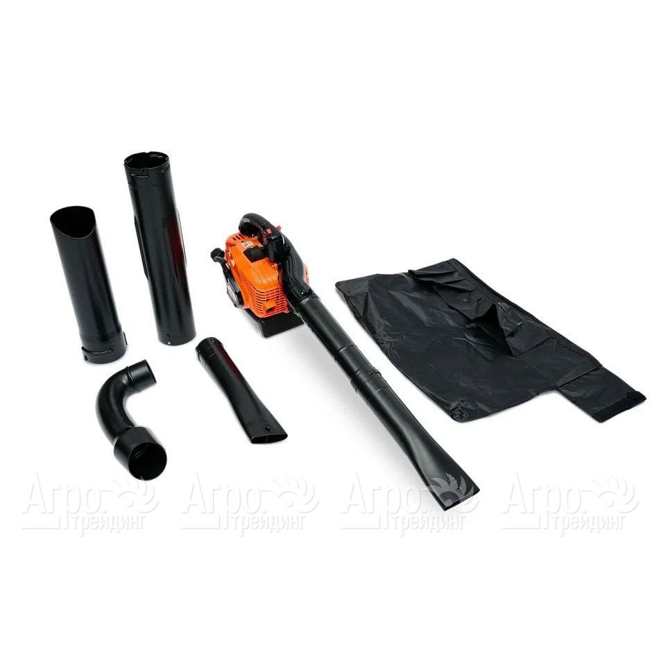• Комплект переоснащения в садовый пылесос позволяет использовать воздуходув для сбора и измельчения листьев и мелкого мусора, что делает его универсальным инструментом для уборки.