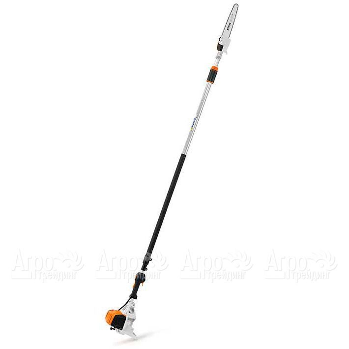 Высоторез Stihl HT 133 используется для спиливания небольших веток деревьев и кустарников на высоте до 4 метров. Благодаря низкому уровню шума агрегат можно использовать вблизи жилого дома или в парке. Натяжение цепи осуществляется сбоку, что позволяет предотвратить контакт рук с острым режущим полотном. Наплечные ремни во время длительной эксплуатации снижают нагрузку на руки и спину оператора. Для удобной транспортировки и хранения в небольшом помещении рукоятка разбирается.